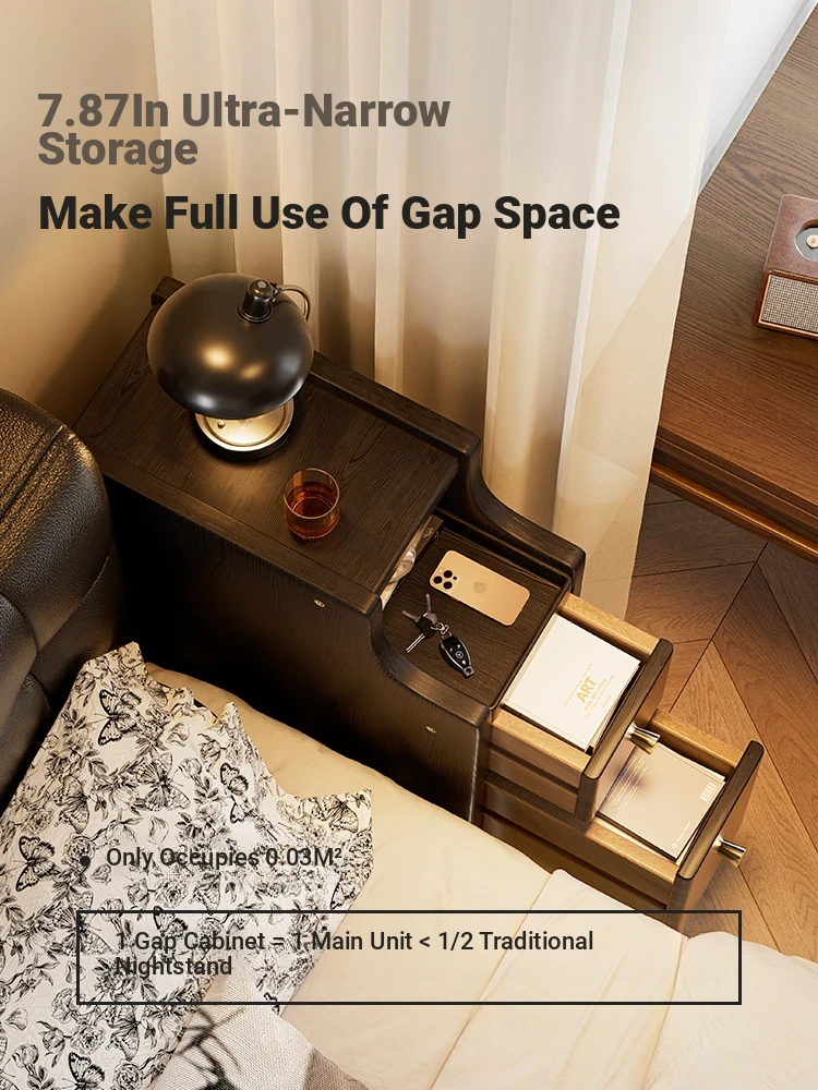 Narrow Solid Wood Nightstand - Mini Side Table for Bedside Storage, Perfect for Tight Spaces, Stylish and Functional Home Organizer