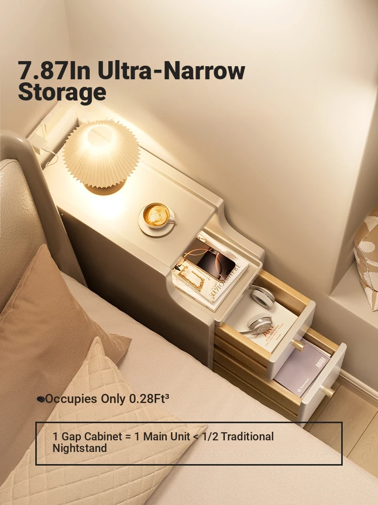 Creamy Narrow Bedside Table - Slim Solid Wood Nightstand for Small Spaces, Perfect 20cm Mini Storage Cabinet for Bedroom, Ideal for Tight Corners and Cozy Decor