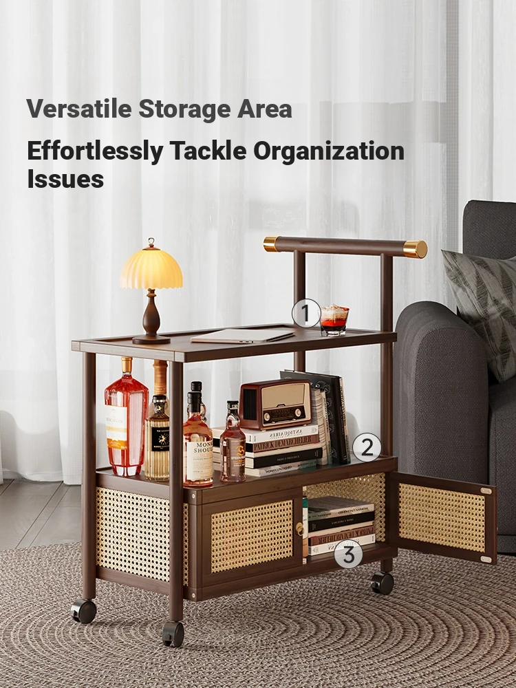 Vintage Snack Cart with Lights - Mobile and Adjustable Coffee Table for Small Living Spaces, Perfect for Storing Treats in Your Home