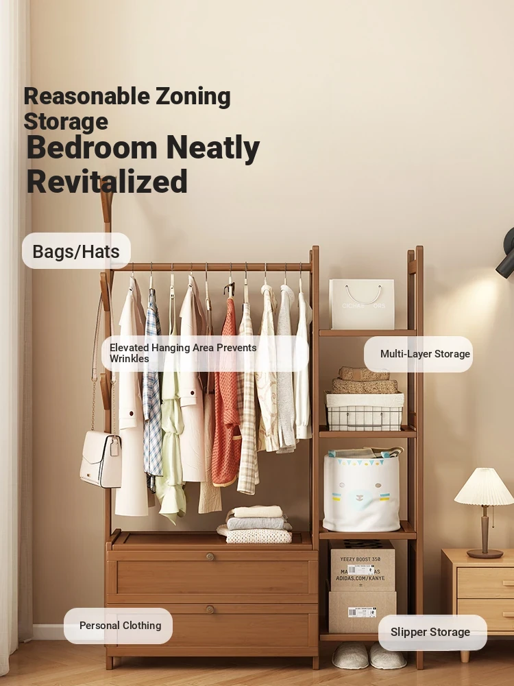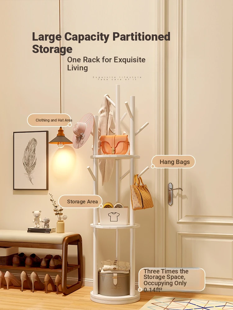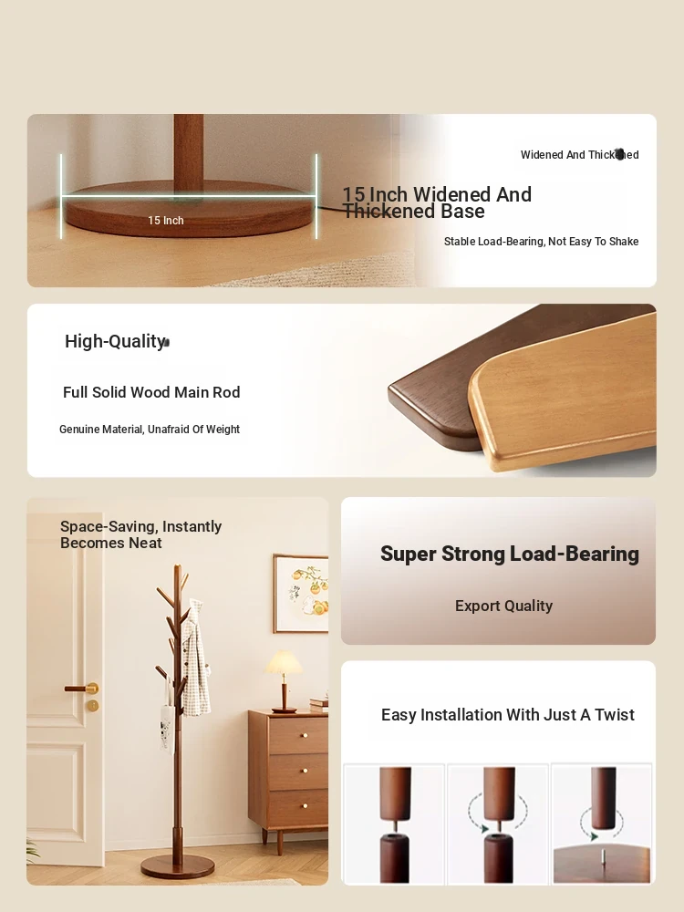 Solid Wood Coat Rack - Elegant Floor-Standing Hanger for Bedroom and Living Room, New Chinese Style, Minimalist Multi-Functional Design, Perfect for Hotels and Home Storage Solutions.
