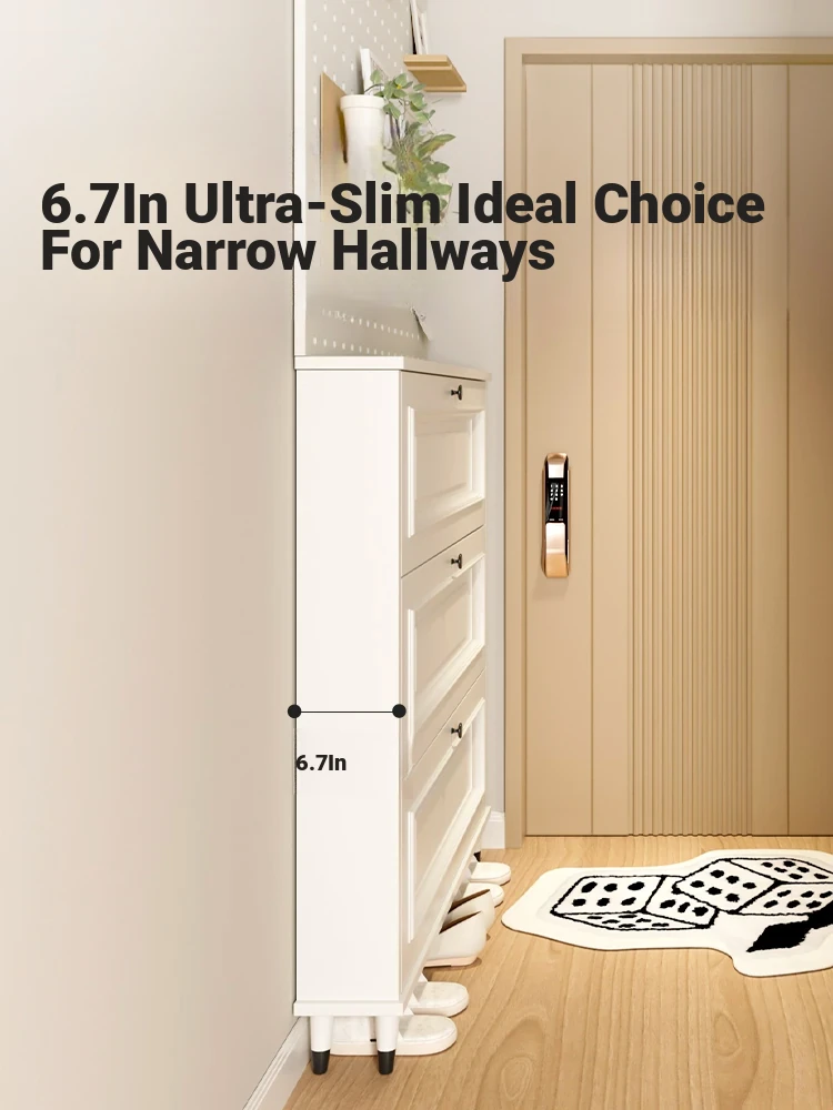 Slim Shoe Rack for Narrow Spaces - Stylish Home Entryway Storage Cabinet, Perfect for Hallway and Corridor Use, Space-Saving Design with Wall-Mounted Convenience