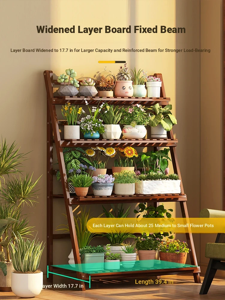 Stylish Wooden Outdoor Plant Stand - Multi-Tiered Floor Shelf for Living Room, Balcony, and Garden - Perfect for Displaying Potted Plants and Flowers