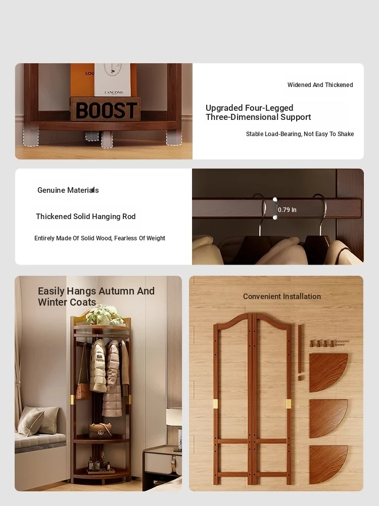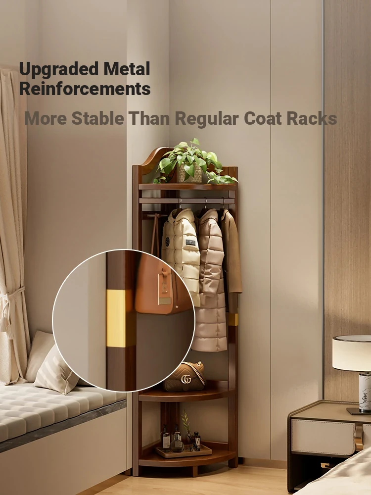 Solid Wood Corner Coat Rack - Space-Saving Freestanding Hanger for Bedroom, Perfect for Corner Use, Ideal for Hanging Clothes and Organizing Items by the Bed