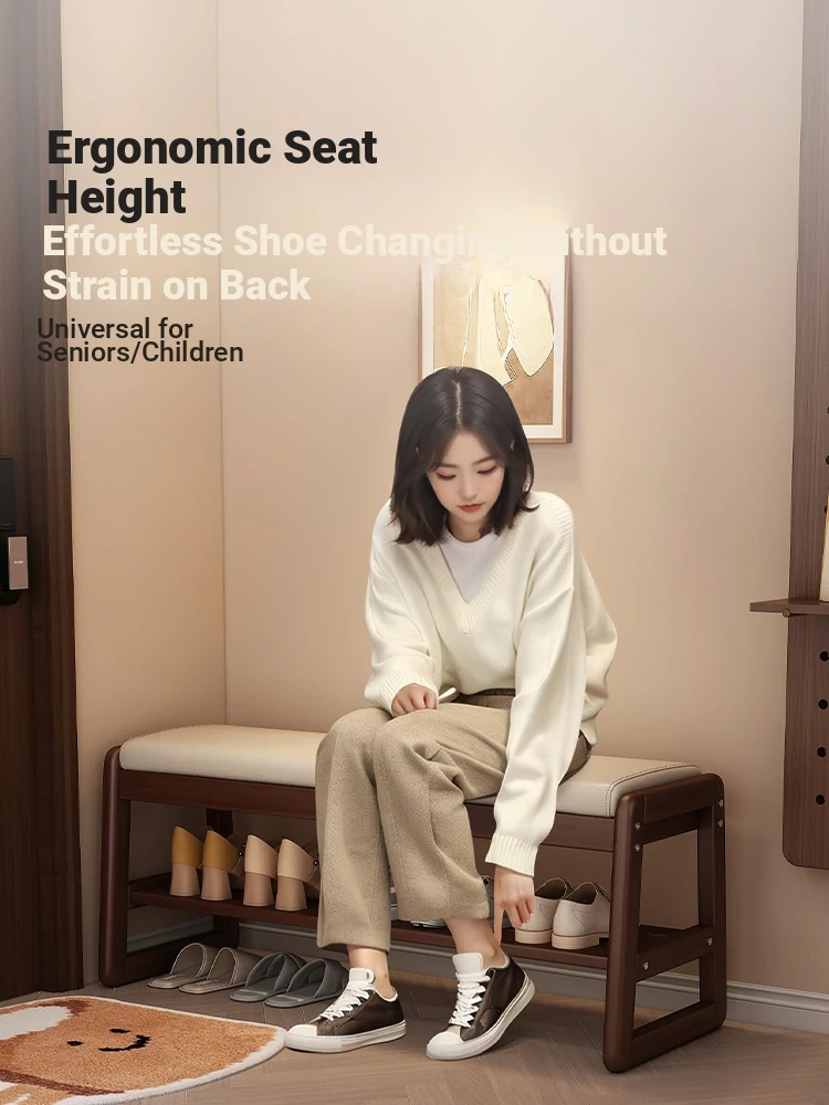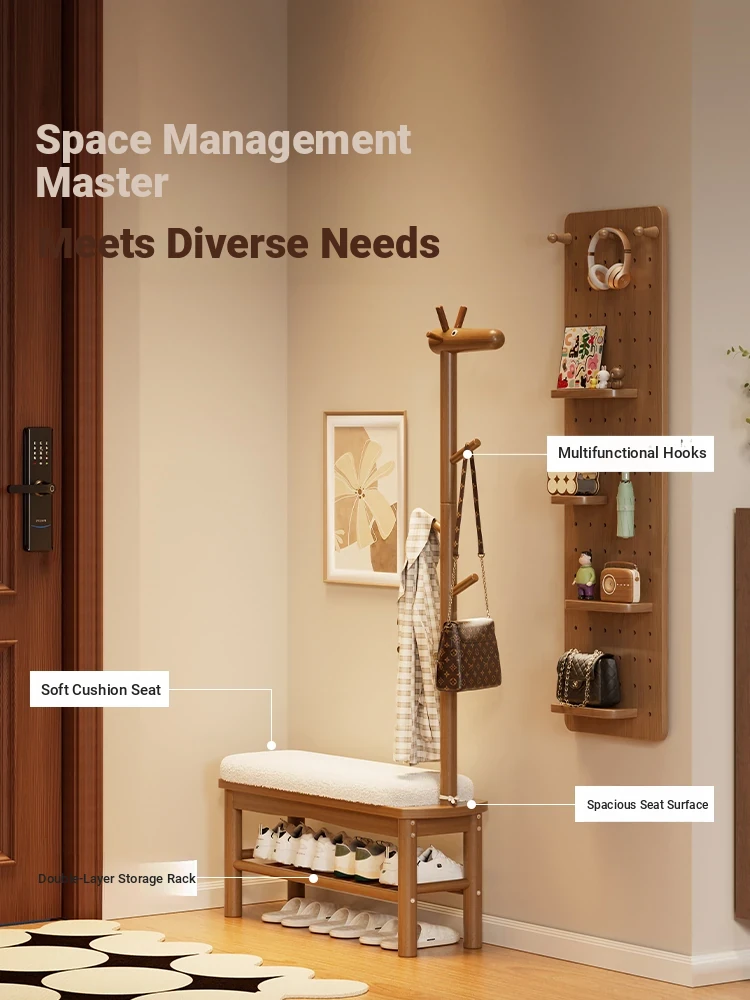 Solid Wood Fawn Shoe Changing Stool - Versatile Entryway Bench with Soft Cushion, Perfect for Home Use, Creative Corner Coat Rack, Functional and Stylish Storage Solution for Your Entryway