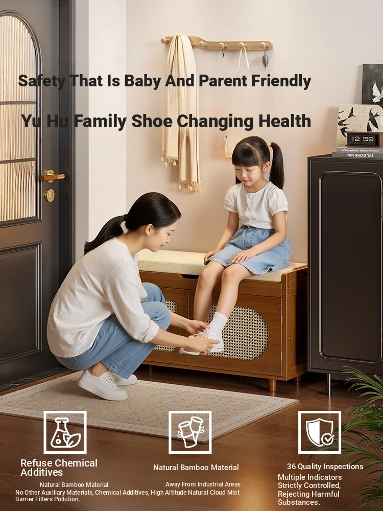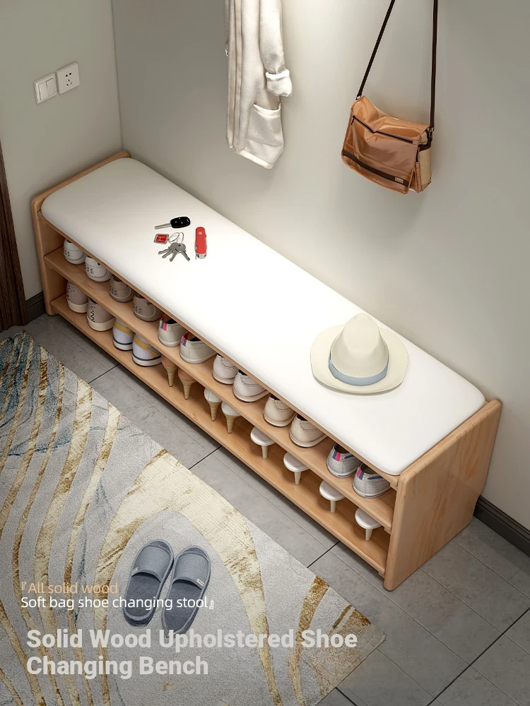 Luxury Entryway Bench with Shoe Storage - Elegant Solid Wood Design for Home, Multi-Functional Seating and Shoe Cabinet Combo, Comfortable Upholstered Long Bench for Easy Shoe Changing at the Door.