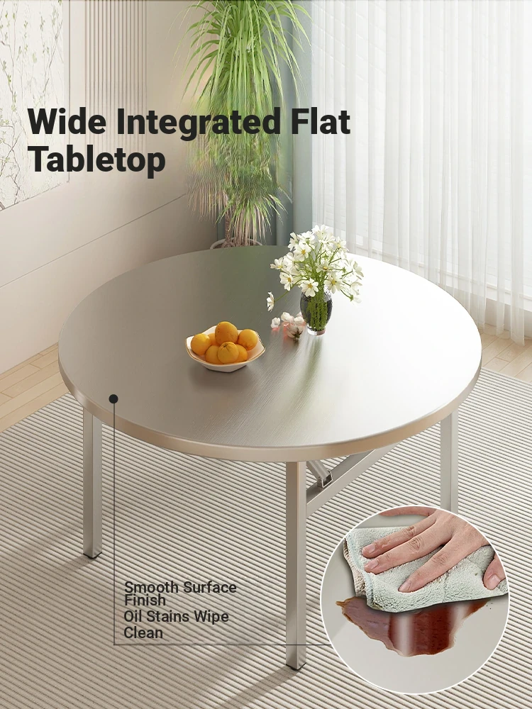 Portable Foldable Stainless Steel Round Dining Table for Restaurants and Outdoor Use – Accommodates Up to 10 People, Perfect for Cafeterias and Gatherings