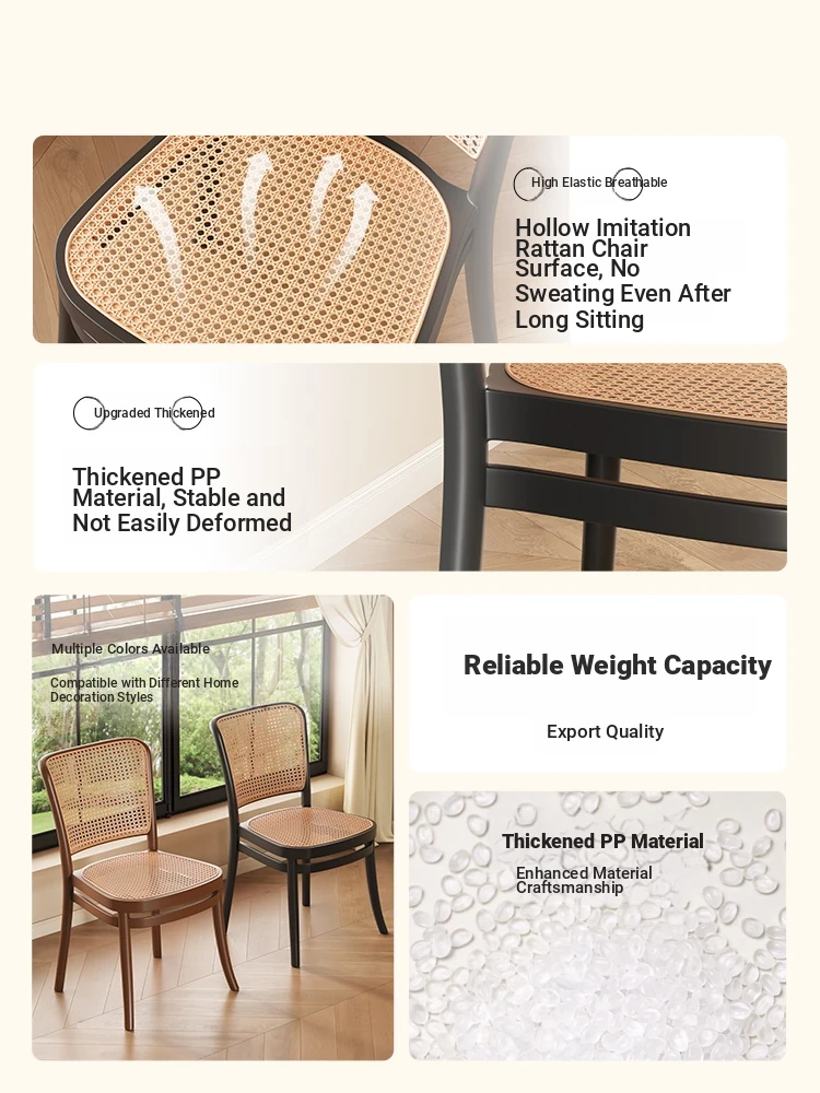 Vintage Rattan Dining Chair - Stylish Plastic Backrest, Stackable and Space-Saving, Perfect for Home Use - Elevate Your Dining Experience with a Touch of Luxury