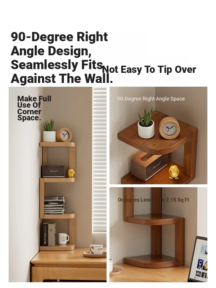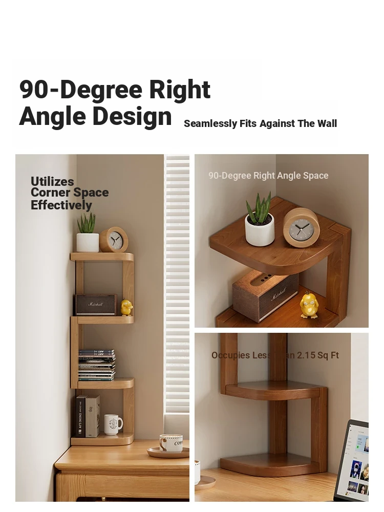 Corner Wood Shelf Table: Multi-functional Side Table for Sofa or Bed, Perfect for Living Room & Bedroom, Wall-Mounted Solid Wood Design