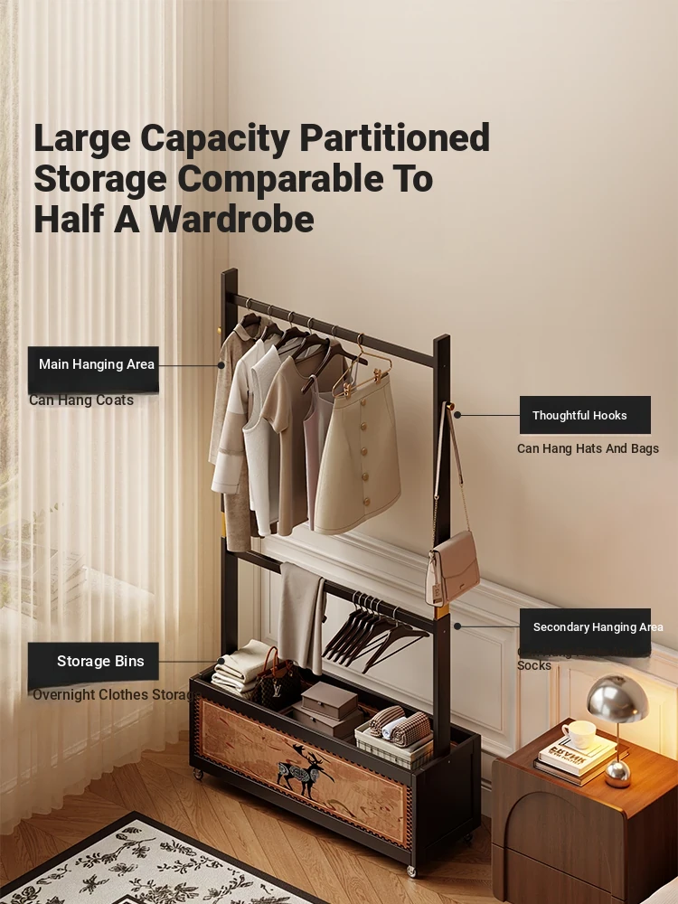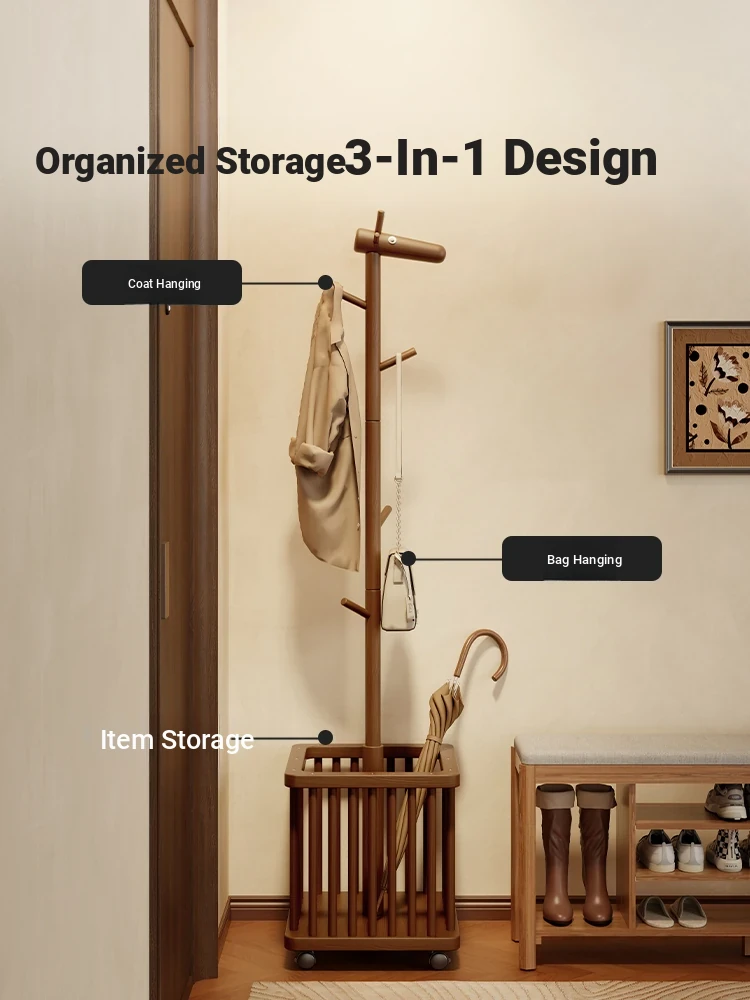 2025 New Stylish Freestanding Entryway Coat Rack - Versatile Bedroom Clothes and Bag Holder, Vintage-Inspired Mobile Storage Shelf
