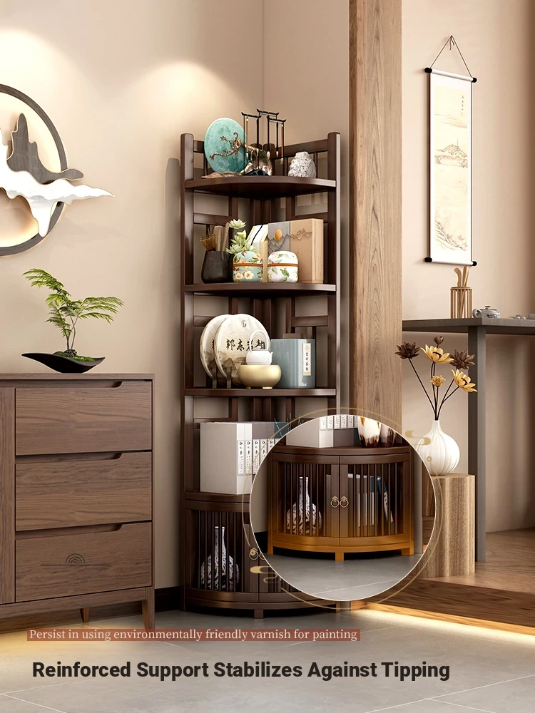 Elegant Solid Wood Chinese Style Corner Display Shelf for Tea Sets - Multi-Layer Storage Rack for Living Room and Tea Room, Perfect for Showcasing Your Teaware Collection