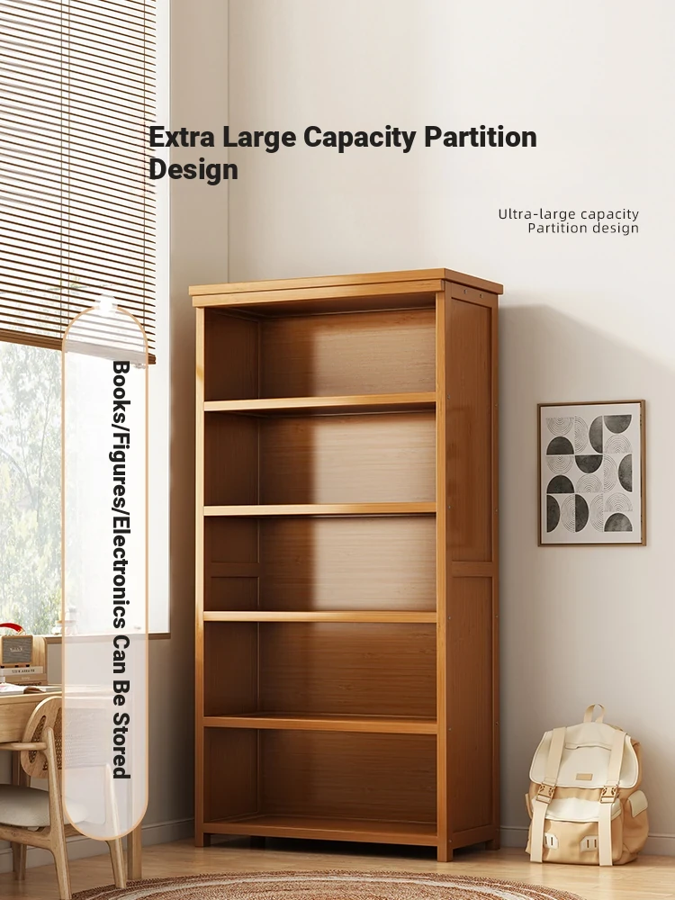 Wooden Bookshelf Floor Standing Storage Rack - Simple Wall-Mounted Design for Home Use, Ideal for Kids and Students - Multi-Layer Organizing Shelves for Easy Access and Stylish Decor