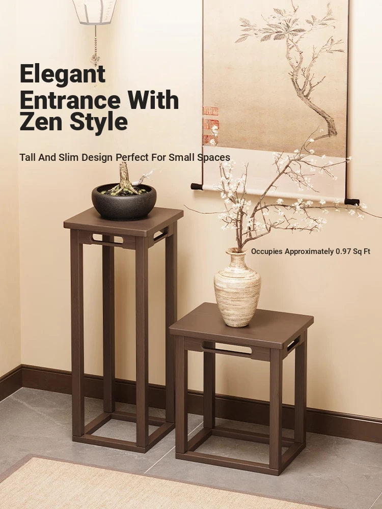 Vintage-Style Solid Wood Floor Standing Plant Rack - Elegant New Chinese Design for Living Room and Balcony, Perfect for Bonsai Display and Home Décor