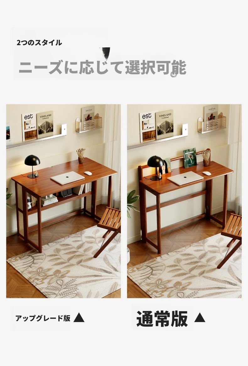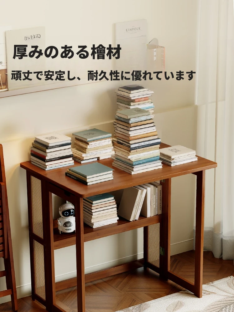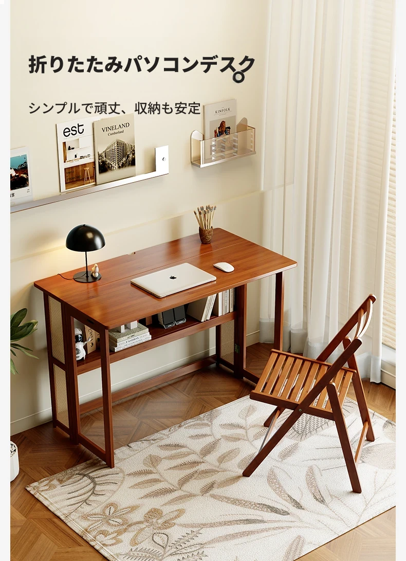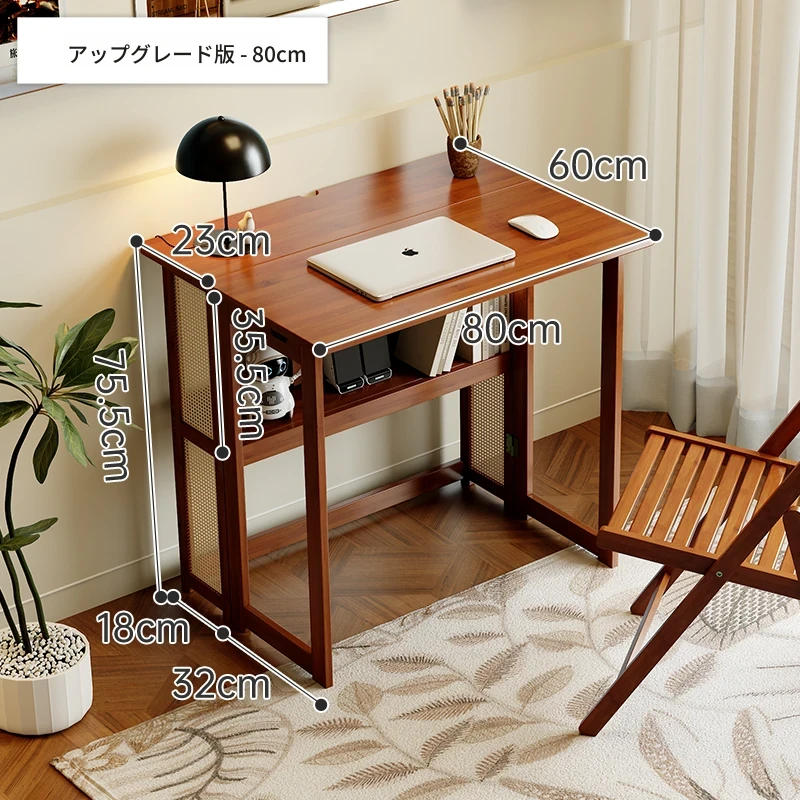 【アップグレードモデル】80CM折りたたみデスク(収納棚付き)-ウォールナット色【厳選素材 ✅厚手支持】