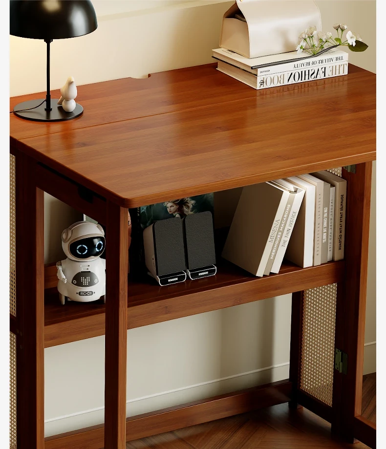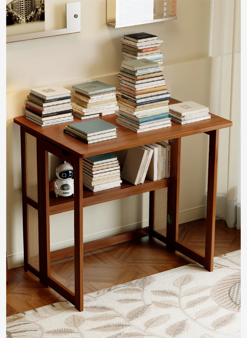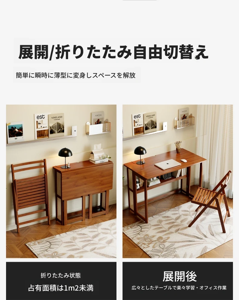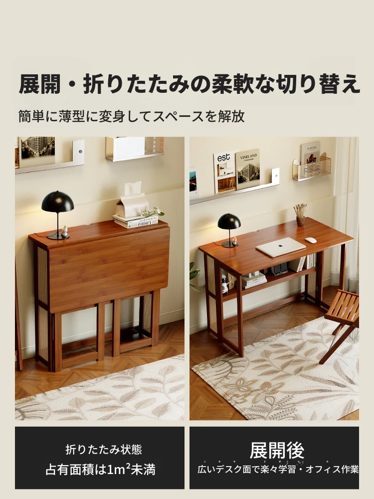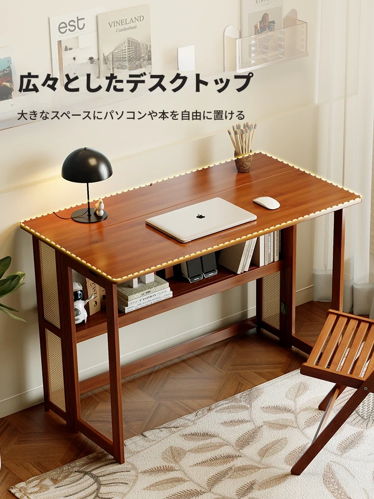 【アップグレードモデル】80CM折りたたみデスク(収納棚付き)-ウォールナット色【厳選素材 ✅厚手支持】