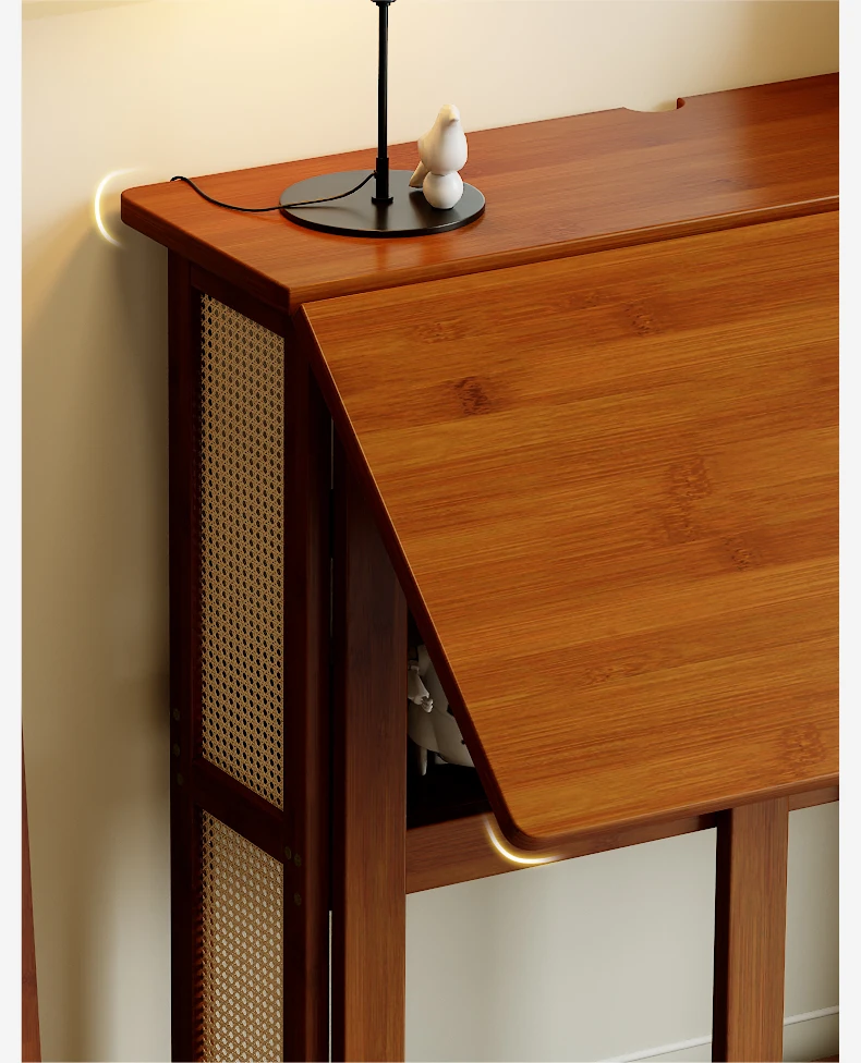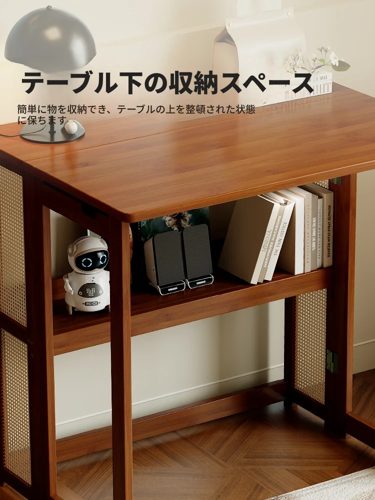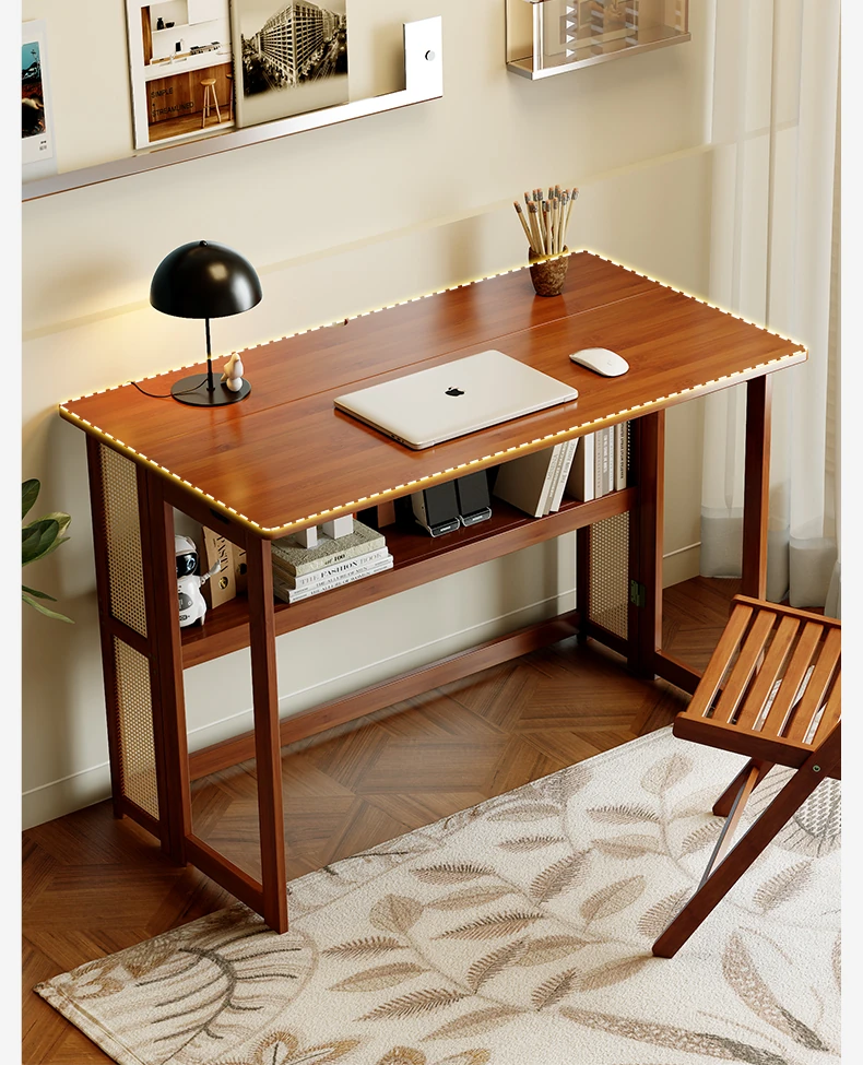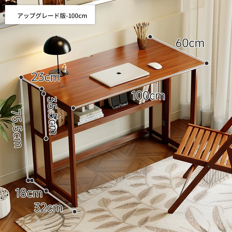 メイン画像モデル⭐【アップグレードモデル】100CM折りたたみデスク(収納棚付き)-ウォールナット色【厳選素材 ✅厚手支持】