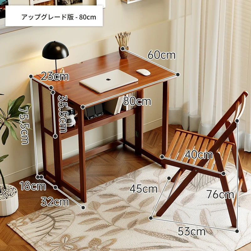【アップグレードモデル】80CM折りたたみデスク(収納棚付き)+椅子-ウォールナット色【厳選素材 ✅厚手支持】