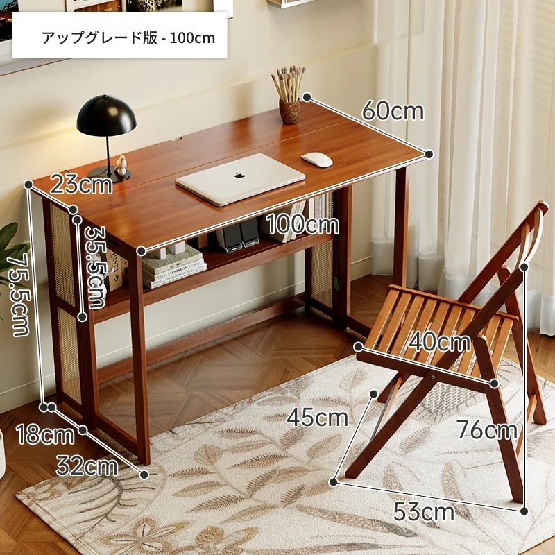 【アップグレードモデル】100CM折りたたみデスク(収納棚付き)+椅子-ウォールナット色【厳選素材 ✅厚手支持】