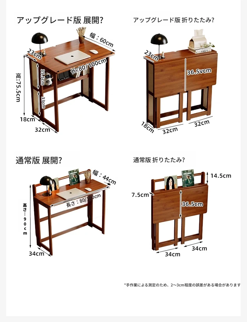 【基本モデル】80CM折りたたみデスク-ウォールナット色【厳選素材 ✅厚手支持】