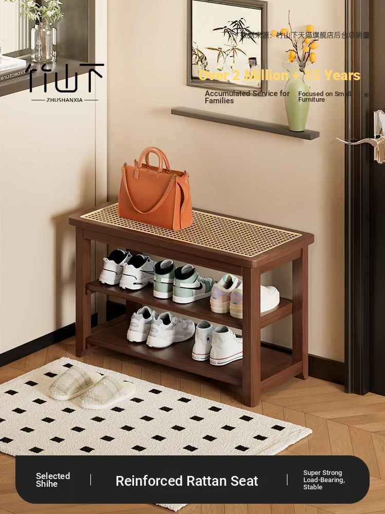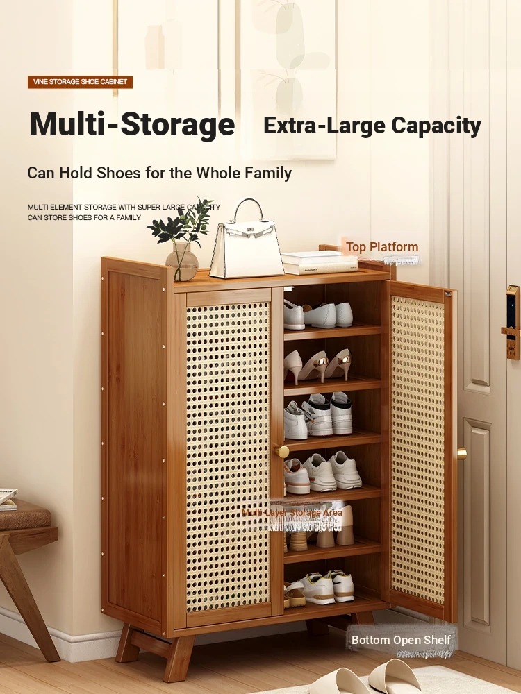 2023 New Stylish Home Shoe Cabinet - Large Capacity Multi-Layer Rattan and Solid Wood Shoe Rack for Entryway and Indoor Use, Perfect for Organizing Your Shoes!