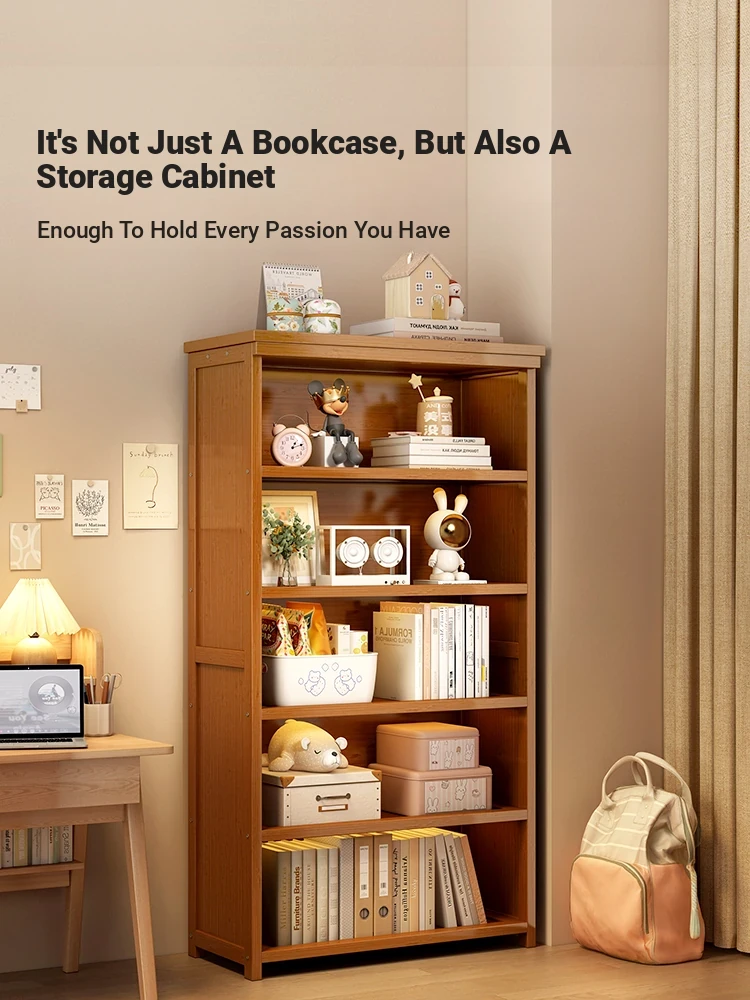 Multi-Layer Solid Wood Bookcase - Stylish Floor Storage Shelf for Students & Home Use, Easy Wall-Mounted Design for Efficient Organization and Space Saving