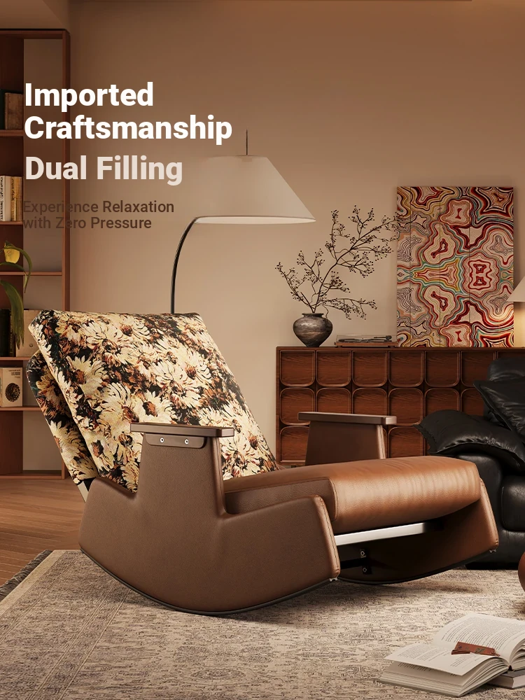 Vintage Relaxing Rocking Chair - Versatile Balcony Sofa for One, Perfect for Lounging and Sleeping, Ideal for Home Living Room, Chic Leisure Furniture with a Touch of Luxury