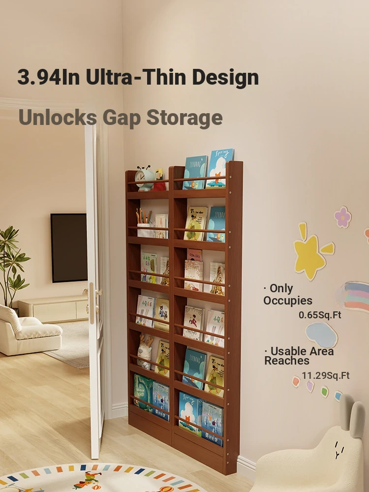 Space-Saving Kids' Bookshelf and Storage Rack - Slim Design for Wall or Door Placement, Perfect for Organizing Picture Books and Toys in Small Spaces