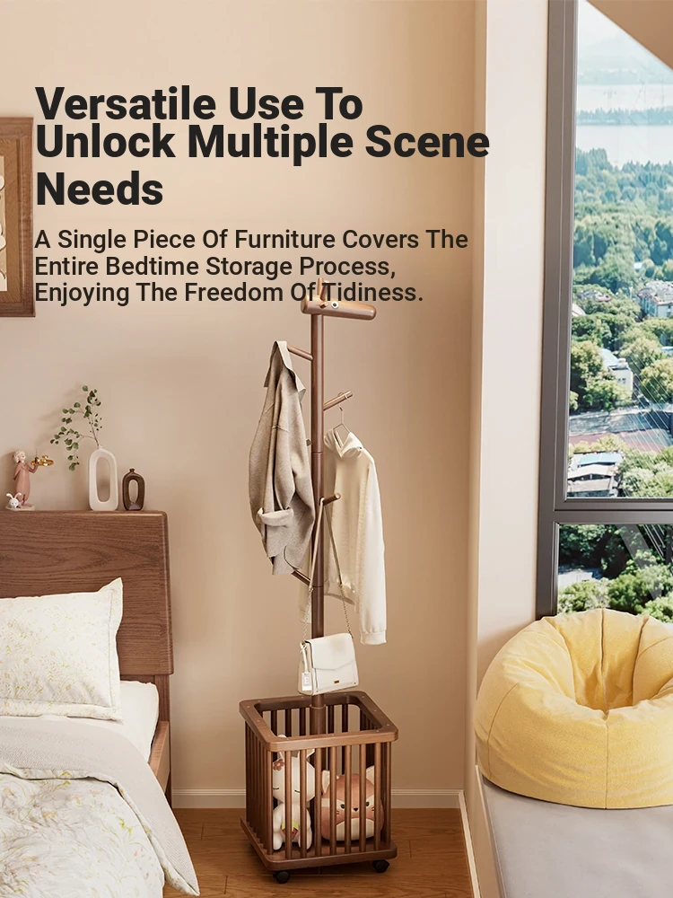 Versatile Wooden Clothing Rack - Stylish Bedside Coat Stand for Easy Access to Clothes, Perfect for Bedrooms and Entryways, Portable and Functional Storage Solution