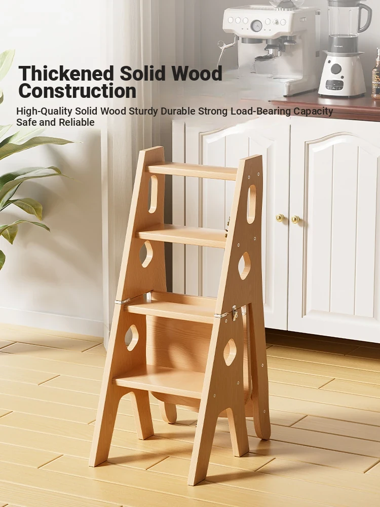 Multifunctional Solid Wood Folding Ladder Chair - Space-Saving Step Stool for Home Use, Adjustable and Versatile for Indoor Climbing and Stair Access