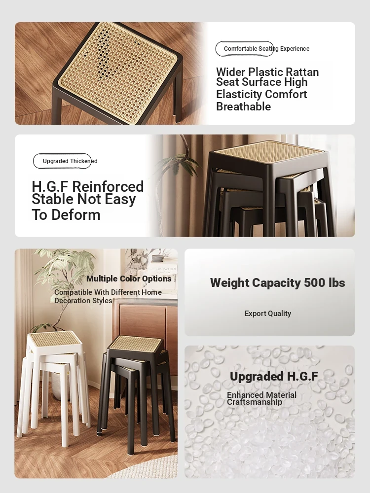 Durable Stacking Rattan Stool for Home Use - Thick Plastic Square Bench, Perfect as Extra Seating for Guests or Vintage Dining Table Décor