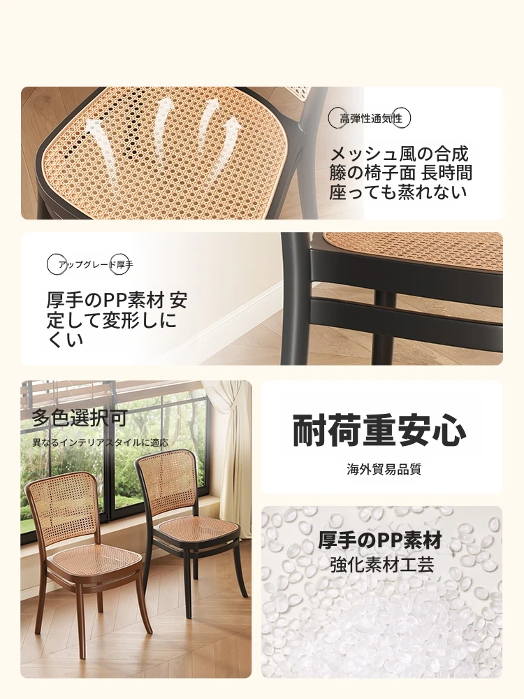 藤編の椅子 中古風ダイニングチェア 家庭用プラスチック背もたれ椅子 折りたたみ可能 高級感溢れる軽やかなダイニングスツール テーブルチェアとして最適!