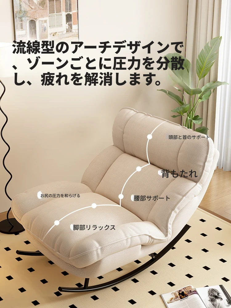 天然素材使用の快適なラタンチェア!長時間座っても疲れない背もたれ付き、リラックスできるロッキングチェアで、バルコニーや家庭用に最適。大人もゆったり眠れる、心地よい休息のひとときをお楽しみください!