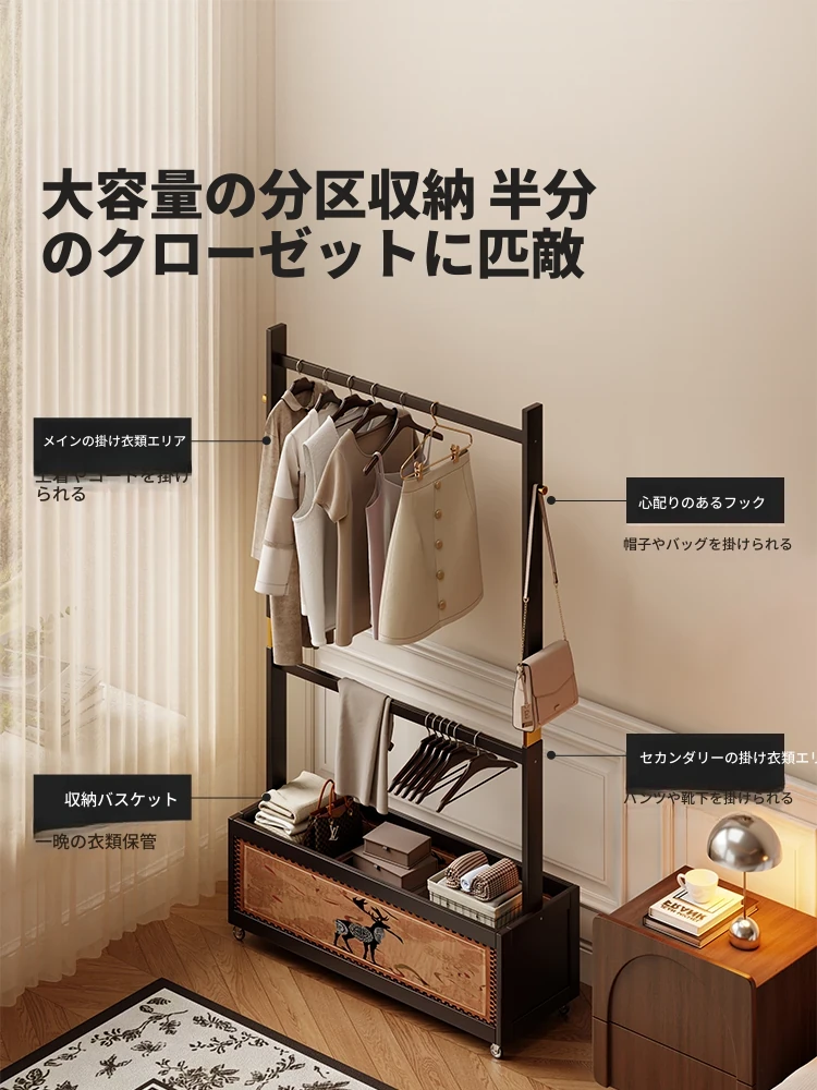 2025年新作!スタイリッシュな玄関ハンガーラック&ベッドルームコートスタンド - おしゃれな入居用バッグハンガー&便利な移動式収納ラックで、スペースを有効活用!