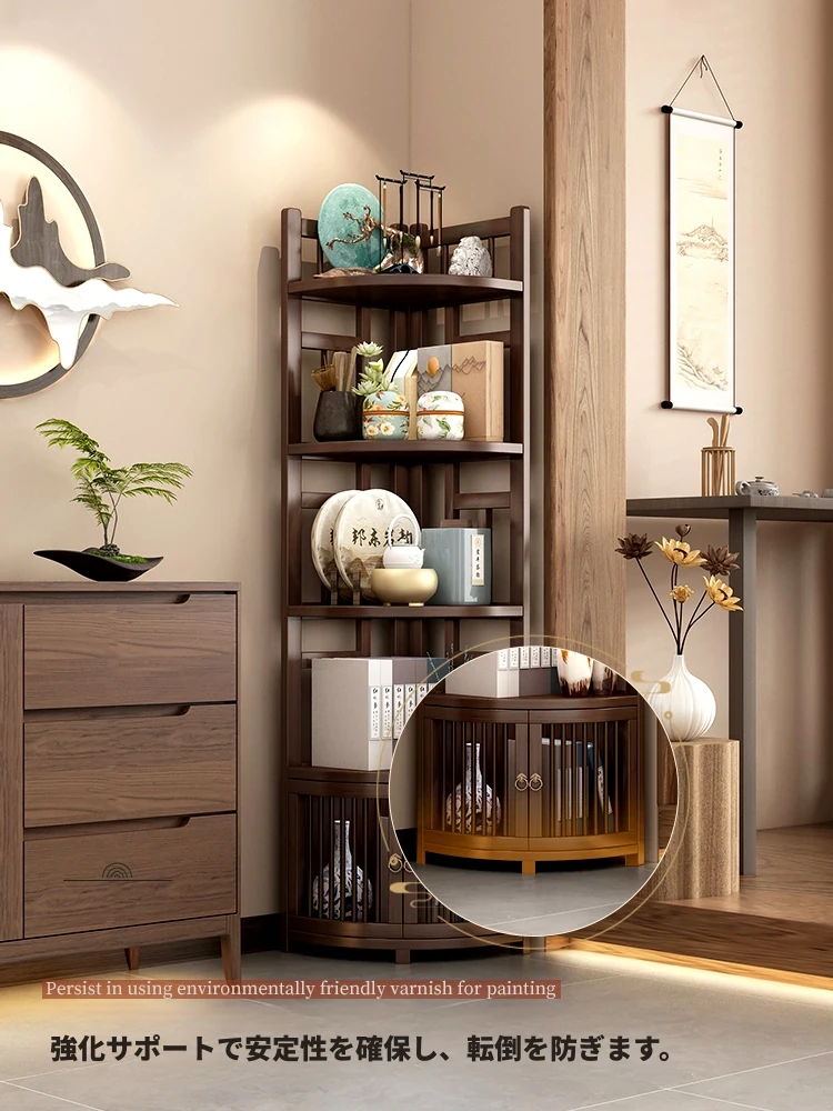 実木製中華スタイルの茶具ラック - 角にぴったり収まる多層収納、リビングや茶室に最適な展示キャビネット!おしゃれで機能的なデザインで、あなたの空間をより魅力的に演出します。