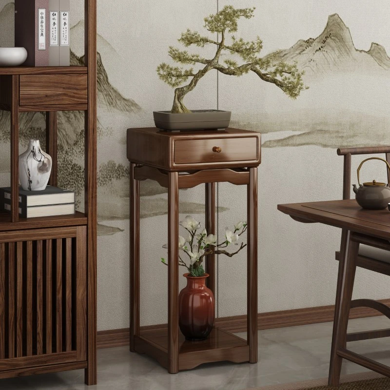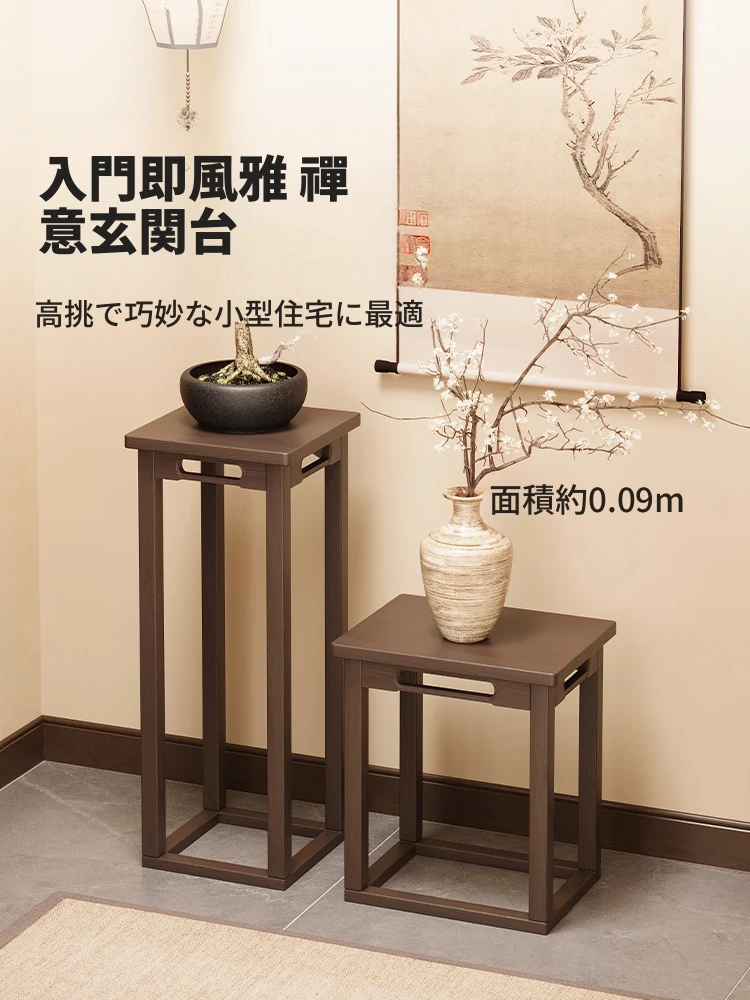 おしゃれなリビングにぴったり!アンティーク風の新中式スタイルのフロア型植物スタンド。バルコニーにも最適な本格的な無垢材使用の高脚花鉢スタンドで、あなたのインテリアを華やかに演出します。