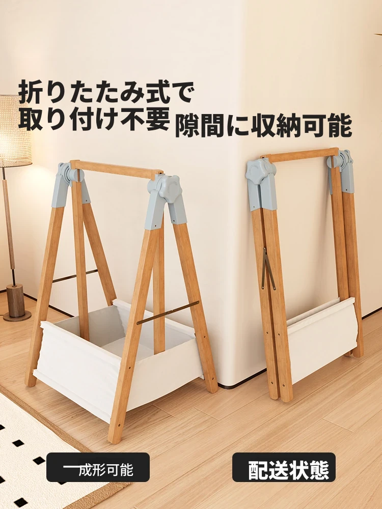 無垢材のハンガーラック - 寝室やリビング、玄関にぴったり!可愛い小鹿デザインの移動式コートスタンドで、お子様の服もスッキリ収納。おしゃれで実用的なアイテムで、空間を明るく演出します!