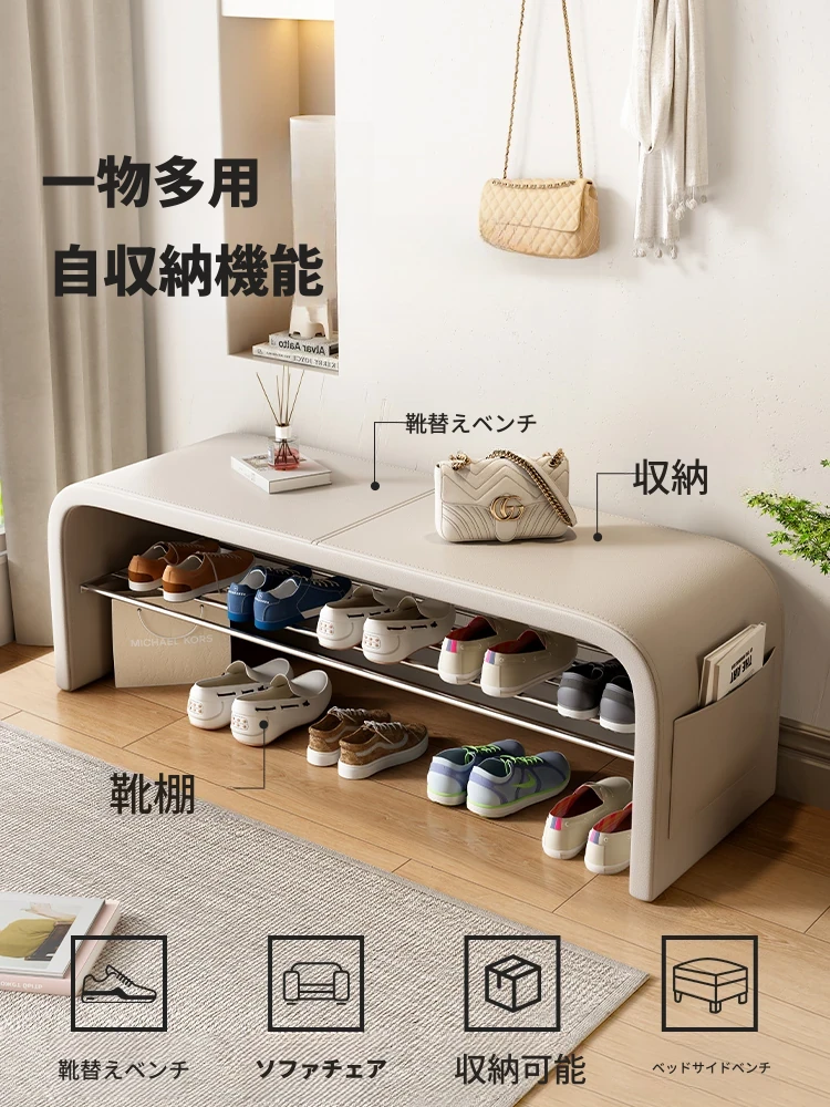 玄関用シューズベンチ|高級感溢れるソフトパッド一体型シューラック|靴を履く時の快適さを追求したおしゃれなデザイン|家の入り口に最適!